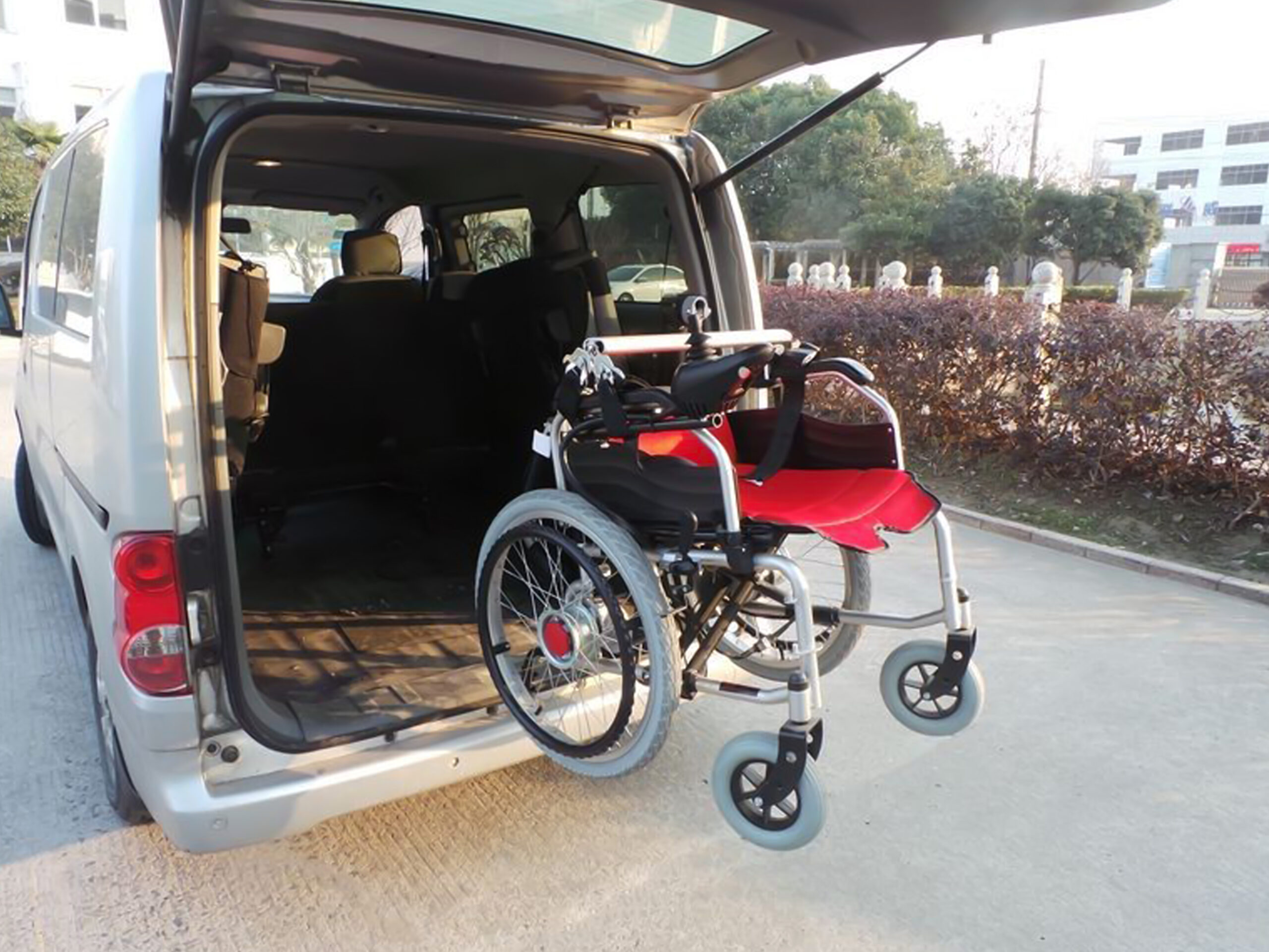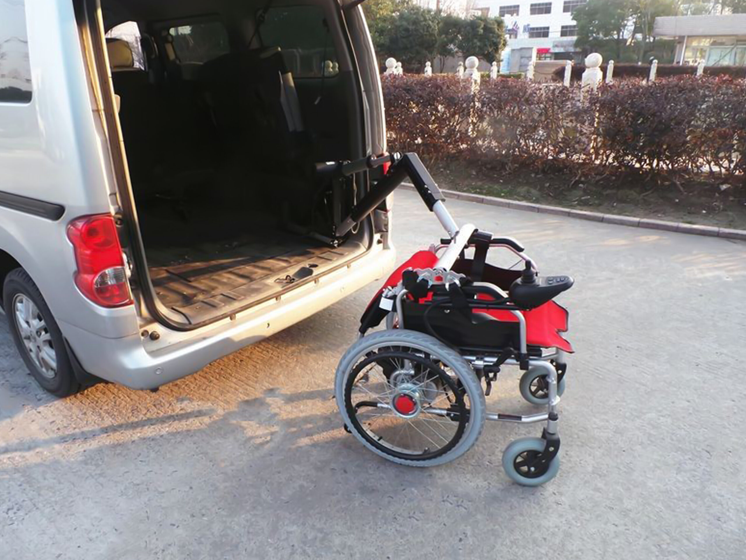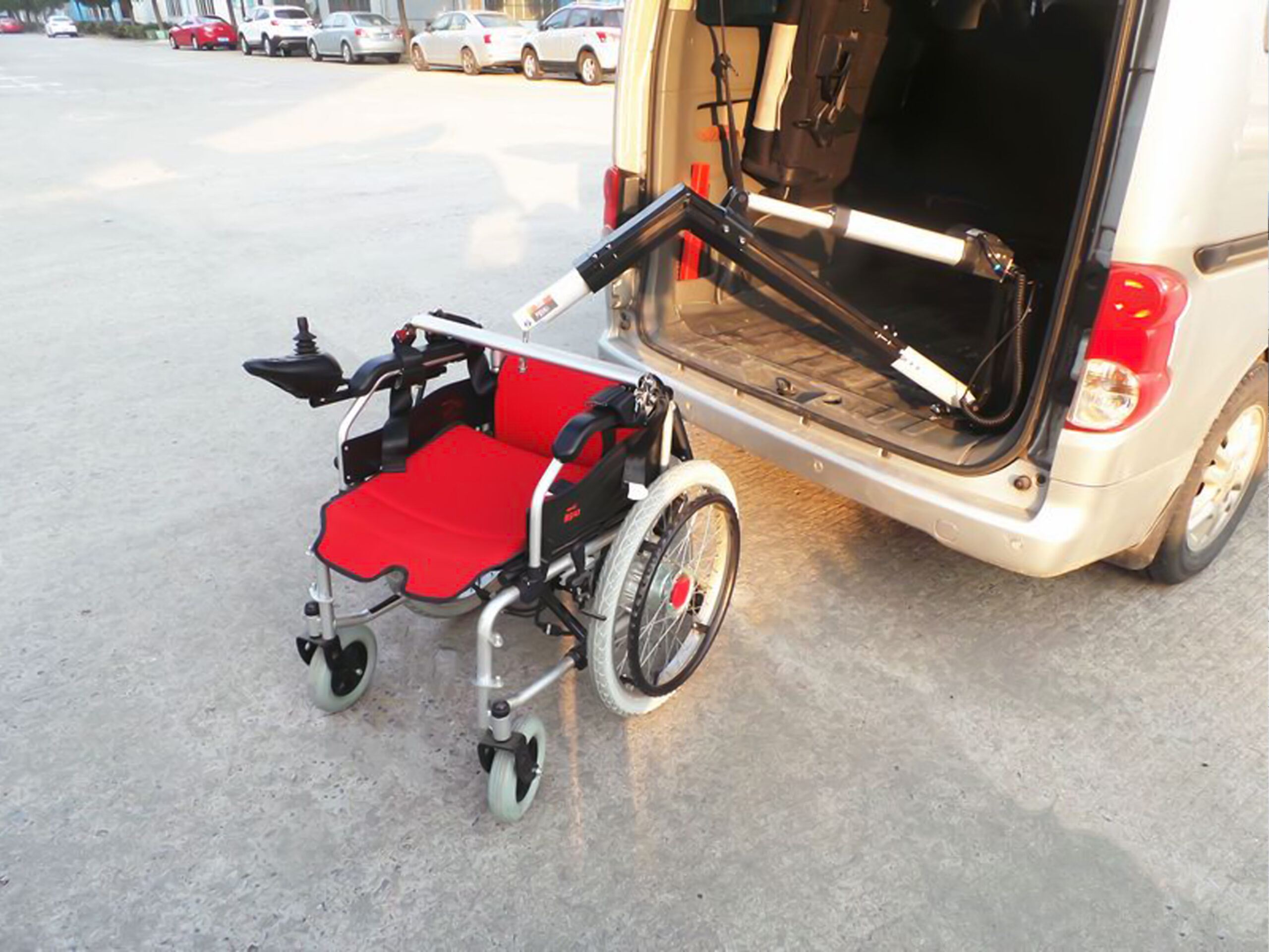 - This wheelchair hoist is installed in car trunk which can quickly and conveniently lift and store the wheelchair into the trunk.