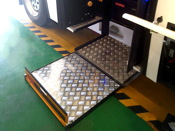 - This wheelchair lift is installed in bus step area.